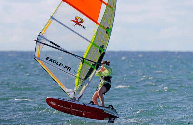 Nous avons mis l'accent majeur sur le développement de l'Eagle-FR 2024 avec pour objectif de remporter les plus hauts niveaux de compétition de foil slalom et de course de foil. C'était un plaisir de voir Justine Lemeteyer monter sa S2Maui Eagle-FR 2023 avec une performance dominante à la PWA Torbole 2023, remportant 6 des 7 éliminations ! En voyant cela, nous avons invité Justine à Maui pour participer aux tests et au développement de l'Eagle-FR 2024, nous assurant qu'elle dispose des bons outils pour viser le championnat du monde PWA en 2024 ! Le succès de Justine s'inscrit dans la tradition de S2Maui, qui a vu Delphine Cousin remporter deux championnats du monde consécutifs de foil PWA et Antoine Questel remporter le tout premier titre de foil en exposition PWA. Les retours et les tests de notre équipe de championnat, comprenant Micah, Justine, Antoine, Delphine, Lohan et Bob, garantissent que les serres de l'Eagle-FR sont d'une netteté incroyable. La nouvelle version 2024 de l'Eagle-FR présente un nouveau profil à grand allongement et une tête plus petite, qui, combinés à une amélioration du vrillage de chute dans le bas-milieu et des perfectionnements du bord d'attaque, offrent une stabilité, une efficacité et une vitesse de pointe incroyables. Le profil aérodynamique en 3D a été méticuleusement affiné pour une vitesse de vol fulgurante. L'utilisation extensive du nouveau film léger coloré "Light-Ply" à 2 plis de S2Maui réduit encore le poids et donne aux voiles une réponse plus directe qui se traduit par une accélération instantanée. Les cambers de faible friction, à multiples rouleaux et à empreinte large de S2Maui, avec une pression soigneusement réglée, garantissent une rotation fluide et complète. Les tailles ont également été affinées pour couvrir une plage de vent plus large et répondre aux besoins des coureurs PWA et récréatifs. L'Eagle-FR 2024 est une arme de course de foil implacable, sans compromis, avec son regard fixé sur le sommet du podium.